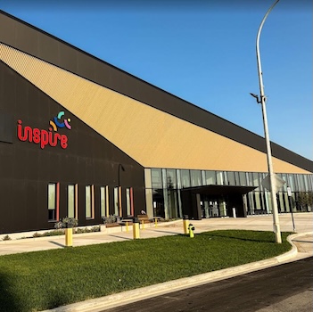 Visit Airdrie’s new large Public Library with indoor parking under the building and a playground outside the building.