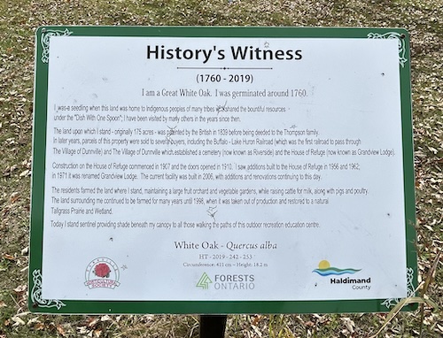 Don’t forget to visit the nearest Thompson Creek Eco Centre and Dunnville’s heritage tree here. The white oak in the park is estimated 260 years old, older than our country!